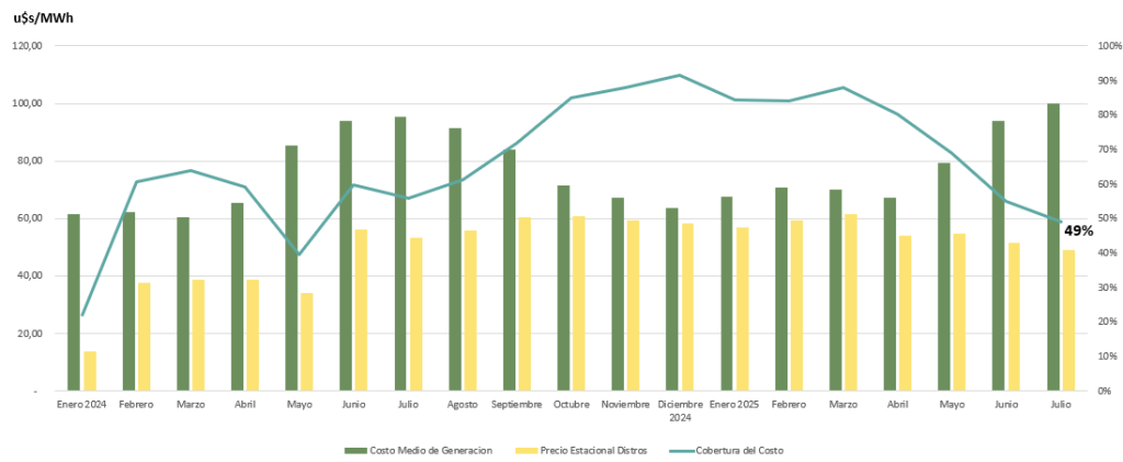 Evolución del costo medio de generación, precio mayorista Distribuidoras y cobertura de costos